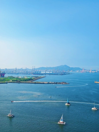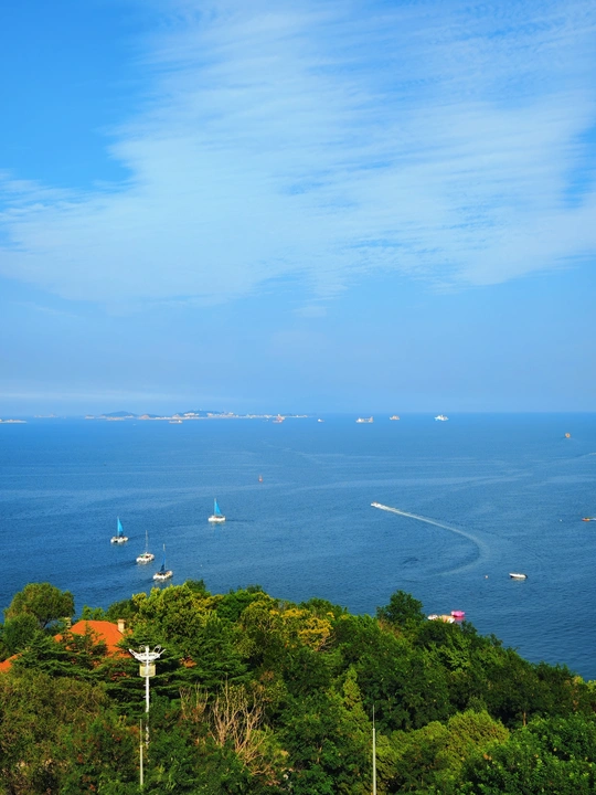 烟台山不高,很轻松就登上,但是登上最高的灯台,却需要排队很久,一切也都值了,高处的美景,是你喜欢的海边城市吗?
