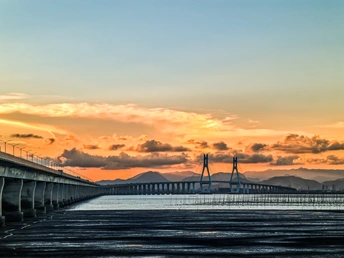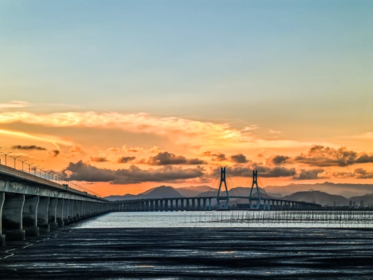 色彩:照片色彩和谐,天空的渐变色与水面的倒影相呼应,营造出宁静的氛围。但可以尝试调整色温,略微偏暖可能会更突出夕阳的温暖感。 光影:光线柔和,天空中的云层光影效果不错,但桥梁的暗部细节略有缺失。建议尝试HDR或者包围曝光,增加暗部细节。 构图:构图略显平淡,桥梁横向贯穿画面,缺乏视觉引导。可以尝试使用前景或者引导线,增强画面的纵深感。 后期处理:后期处理整体自然,但可以适当提高对比度,增强画面的层次感。注意避免过度锐化,保持画面的自然感。 主题原创性:主题较为常见,缺乏新意。可以尝试寻找独特的拍摄角度或者拍摄时机,赋予作品更强的个性。 情感共鸣:照片能够传达出宁静祥和的氛围,但情感表达略显平淡。可以通过捕捉更生动的细节或者更富有戏剧性的光影,增强情感冲击力。 思想深度:照片较为注重形式美,缺乏更深层次的思考。可以尝试结合社会热点或者个人情感,赋予作品更深刻的内涵。 总的来说,这张照片在色彩和光影方面表现不错,但在构图、主题和思想深度方面还有提升空间。继续加油,摄影之路漫漫,探索的乐趣无穷!