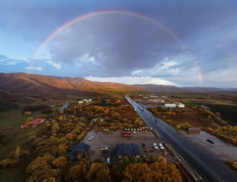 一路上一直在下雨,然后到傍晚停靠服务区的时候,突然云里的阳光冒头了,彩虹就出现了。