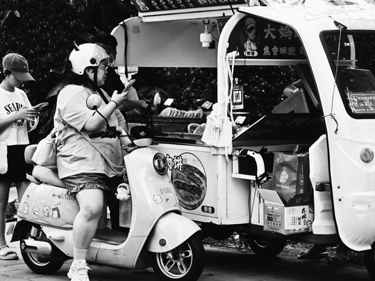 市井的烟火里,流动小吃车的焦香酥脆,与电动车上低头的片刻闲暇,交织成平凡日子里最真实的模样,每一口吃食,每一次驻足,都是生活的鲜活注脚。