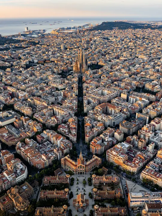 俯瞰巴塞罗那棋格般的城市,可以感受到充满秩序感的对称美。