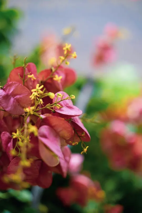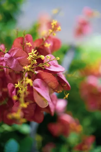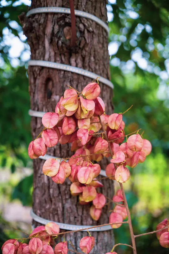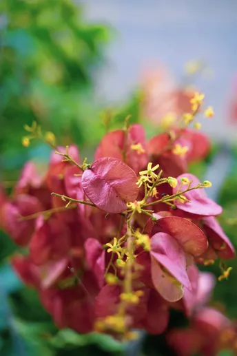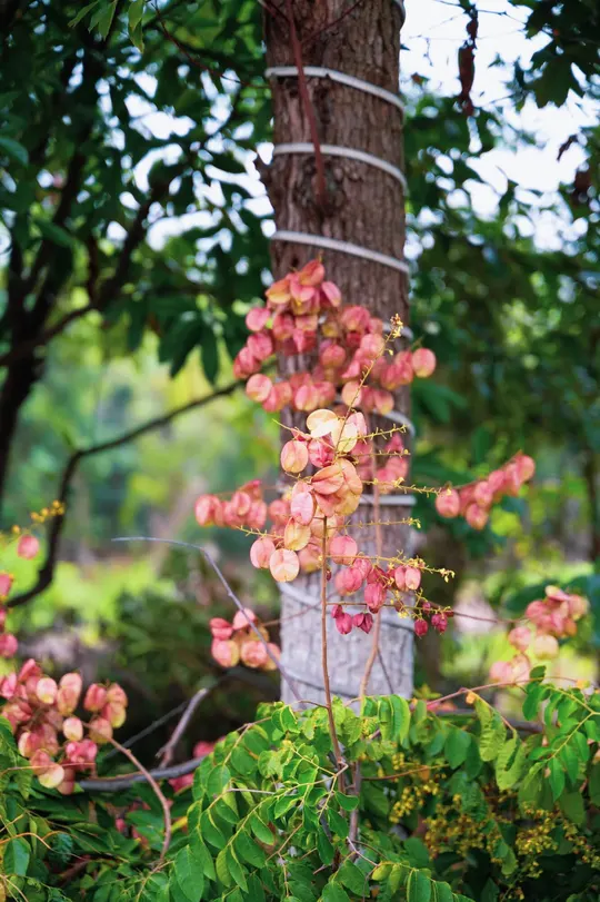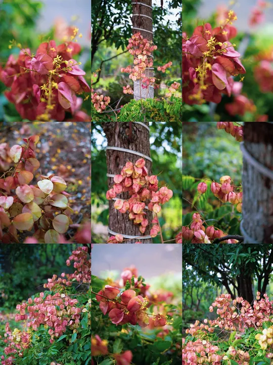 栾树果的季节 只见路边的栾树果开爆了,每朵栾树花都结了一个果,一串果子便形成了绝美的栾树果棒,十分美丽 栾树果的果子随着时间的推移会慢慢的变色,属于渐变色的花果,当它开的花是金黄色,结的果有粉红色变成红色在变成淡枚粉色,一串串的很可爱,驻足拍照也是不错的选择。 栾树花果同枝,金黄小花与红果交织形成视觉冲击,代表“奇妙震撼”;花果期长达3个月,贯穿生命历程,故称“绚烂一生”。 栾树果作为秋季标志景观,常用于城市绿化与文学创作,其观赏价值与经济价值(如果实制染料、种子榨油)进一步强化了文化象征。