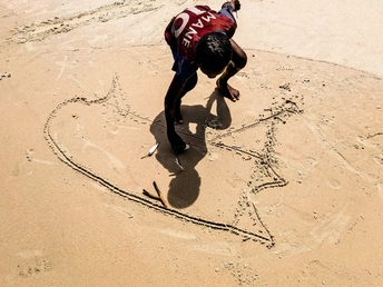 午后的海风吹过,孩子蹲下身,把沙滩当作纸,把树枝当作笔。鱼的身影跃然成形——这就是他们的童年画册,也是马达加斯加最纯粹的生活片段。 收起