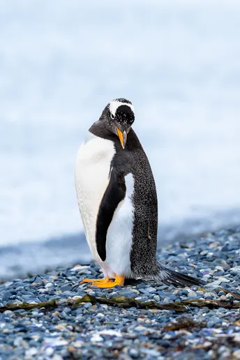 “巴布亚企鹅🐧”其实就是 Gentoo Penguin(巴布亚企鹅)。 它们是南极半岛和南乔治亚岛等地常见的企鹅品种,特征非常明显: • 头顶有一条明显的白色斑纹,从一只眼睛上方延伸到另一只眼睛上方,像“发箍”一样。 • 橙红色的喙、粉红色的脚掌,比麦哲伦企鹅更“可爱圆润”。 • 它们是所有企鹅里游泳速度最快的,时速可达 35 公里。 • 喜欢在卵石上筑巢,经常可以看到它们嘴里叼着小石子“送礼”给配偶。 在乌斯怀亚本岛周边(如马提亚斯岛、马特洛岛)主要是麦哲伦企鹅,巴布亚企鹅通常要到更南一些的南极半岛、南乔治亚或少数专门的“企鹅岛”远足才能看到。如果你在乌斯怀亚参加**“企鹅观赏+登岛”一日游**(比如马提亚斯岛+哈伯顿牧场),偶尔也能看到少量巴布亚企鹅混在麦哲伦企鹅群里。