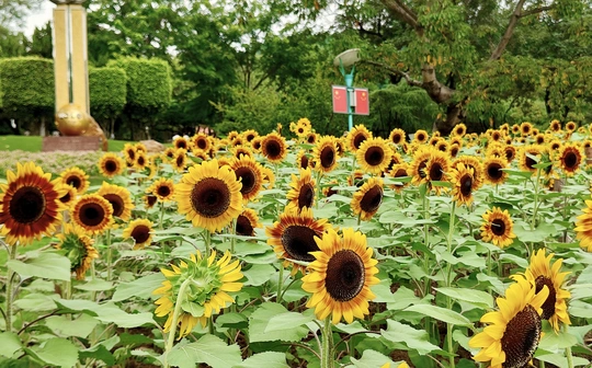 广州云台花园里,向日葵如金色小太阳般热烈绽放。它们仰着灿烂的笑脸,追逐着每一寸阳光,金黄花瓣似绸缎般柔软。微风轻拂,花海泛起层层金色波浪,空气中弥漫着淡淡芬芳。漫步其中,仿佛置身梦幻的金色世界,每一眼都是治愈与美好。