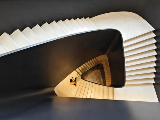 人生如这螺旋梯,每一圈都似重复的轨迹,你以为困在相似的弯道里,实则每一次回旋都离顶点更近;只要敢踏上台阶,定能在螺旋的韵律里,走出独属于自己的上升弧线。
