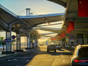 在霞光里,航站楼的风裹挟着国旗的红,每一面飘扬的旗帜都是家国的注脚。车流奔赴向远方,正如我们在时代的征程里,怀着对祖国的赤诚与热爱,奔赴充满希望的未来,看盛世长明,盼前程似锦。