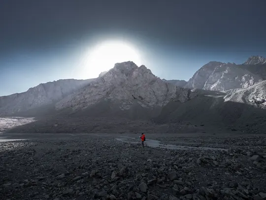 太阳刚好在山峰之上,你光看去,刺眼但又魔幻,于是拍摄了这张照片.