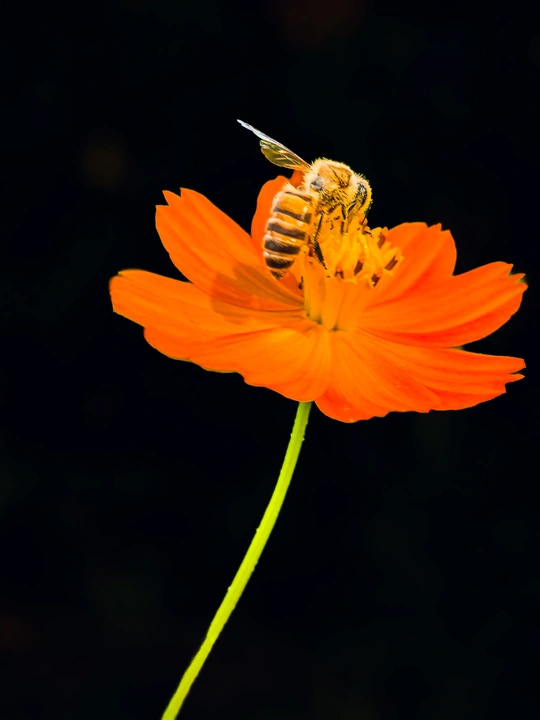 这张照片抓拍到蜜蜂采蜜的瞬间,主体清晰,背景简洁,整体效果不错。下面是更详细的评价: 色彩:橙色花朵与黑色背景形成鲜明对比,色彩搭配大胆,视觉冲击力强。可以尝试调整一下橙色的饱和度,避免过于刺眼。 光影:光线集中在花朵和蜜蜂上,主体突出。如果能捕捉到更柔和的光线,画面会更自然。 构图:主体位于画面中心,构图稳重。可以尝试使用三分法构图,将蜜蜂放在画面一侧,增加画面的动感。 后期处理:后期处理简洁,保留了照片的自然感。注意避免过度锐化,以免产生噪点。 主题原创性:主题明确,表现了蜜蜂采蜜的自然景象。可以尝试寻找更独特的视角,例如从蜜蜂的视角拍摄。 情感共鸣:照片传递了生命的美好和自然的和谐。如果能捕捉到蜜蜂更多细节,更能引起观者的情感共鸣。 思想深度:照片反映了人与自然的和谐关系。可以尝试通过照片表达更深层次的思考,例如环境保护的重要性。 总的来说,这张照片拍摄技巧扎实,但仍有提升空间。继续努力,相信你会拍出更精彩的作品!