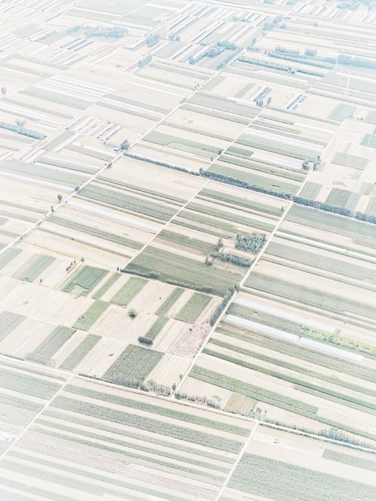 航拍视角下,农田如精心排布的格线,黄绿交织间,是农耕文明的秩序之美,也是大地写给季节的诗意篇章。