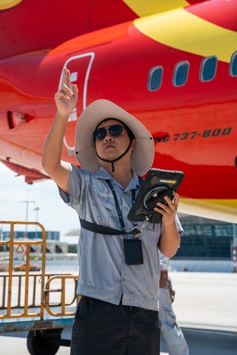 2025年8月 厦门高崎国际机场,一线工作人员在保障暑运运行