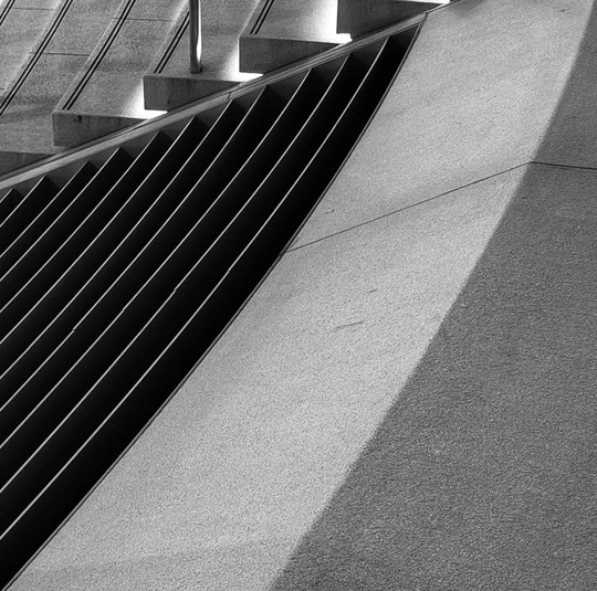 大都市觅小景,黑白片求光影。 多形线做减法,影调美展韵灵。