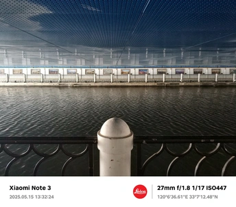 盐城市盐立方和欧风花街的中间主路桥下,有一段隧道。这里看似普通,却展示了众多或造型独特,或建筑难度巨大的世界名桥,这里就是世界名桥文化长廊。长廊顶端的天花板也就是路桥的底部铺设了蓝色的建筑材料,反射了底下沟渠的波澜,沟渠平静无波,长廊的边上挂满了密密麻麻的油画风格的名桥照片,用别样的艺术展现了世界的另一个风貌,给盐城这个多水多桥的城市,增添了些许人文和艺术情怀。 我站在长廊的一边,拍下了这一张横平对称的记录照。