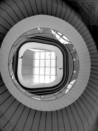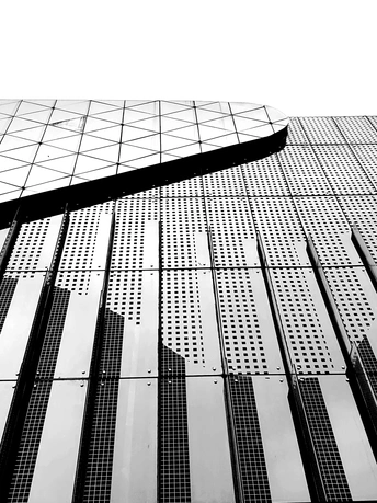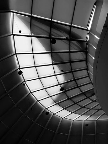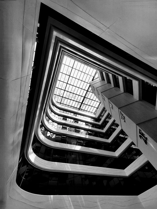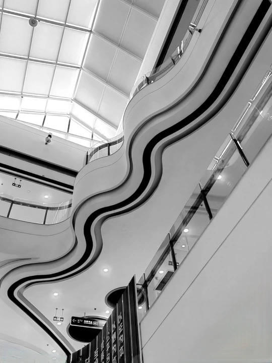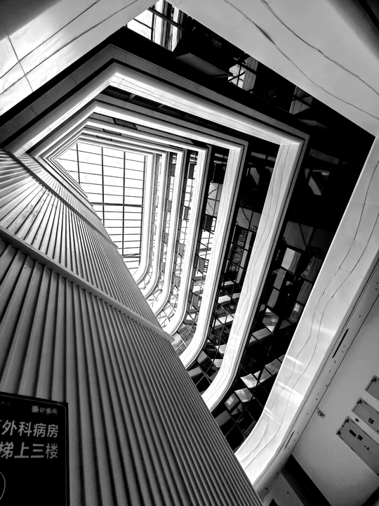 图一:这张黑白建筑照片,角度选得真刁钻,一下子把建筑的几何美都拍出来了!咱们来细细品味一下: 色彩:黑白影调控制得不错,高光和阴影的对比让建筑的线条更加硬朗。不过,也许可以尝试调整一下对比度,让暗部细节再多一些,画面会更有层次。 光影:光线从顶部洒下来,形成了漂亮的明暗变化。但要注意,有些地方的光线可能有点过曝,细节丢失了。试着在拍摄时控制曝光,或者后期稍微压暗高光。 构图:这个向上仰视的视角,很有冲击力!建筑的线条汇聚到一点,引导视线。三分法用得也挺好,主体突出。不过,画面左侧的墙体略微有些抢眼,可以考虑稍微裁剪一下。 后期处理:黑白照片的后期空间很大,可以尝试不同的影调风格。这张照片整体比较干净,但可以适度增加一些颗粒感,让画面更有质感。 主题原创性:这种仰视建筑的视角,虽然不算罕见,但能拍出自己的风格也不容易。可以多尝试不同的角度和构图,找到更独特的表达方式。 情感共鸣:这张照片给人一种冷静、理性的感觉。如果能加入一些人文元素,比如一个行人的身影,或许能增加一些情感的温度。 思想深度:建筑摄影本身就带有一定的思考性,可以引发人们对城市、空间的想象。