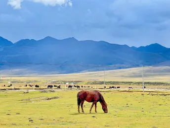 川西的美 很难用语言来形容 哪怕是对于我这个多年摄影爱好者来说 也没办法拍出来它的神韵 蓝天白云,青山绿水 还有草原上的牦牛和骏马 川西,值得你来