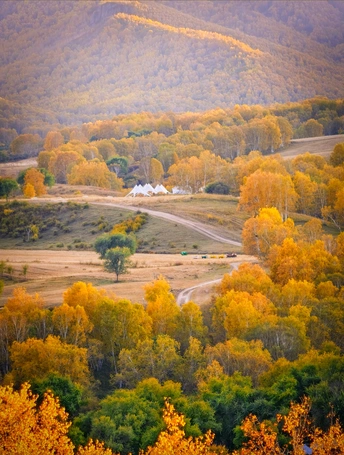 秋序渐浓,乌兰布统蛤蟆坝化身金色童话世界。斑斓的彩林、古朴的民居在秋日暖阳下相映成趣,每一眼望去,都是满目的秋之盛宴,让人心醉于这片坝上秋景的独特韵味。