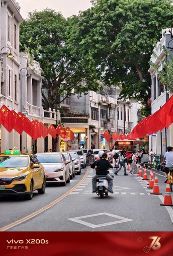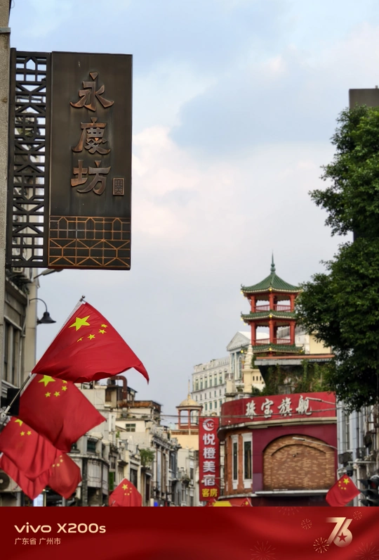 在广州永庆坊,邂逅了一整条街的中国红🇨🇳 骑楼老街与五星红旗同框,复古与热烈碰撞出独属于广州的国庆浪漫~ 漫步其中,风一吹,红旗猎猎作响,仿佛能听见家国情怀在岁月里的回响。无论是街头巷尾的烟火气,还是建筑与红旗的绝美适配度,都让人忍不住按下快门 这个国庆,来永庆坊沉浸式感受这份中国式浪漫吧,分分钟出片,把爱国情怀和打卡快乐一起收入囊中~