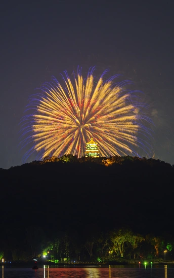 一年一度的无锡鼋头渚国庆烟花开始了。