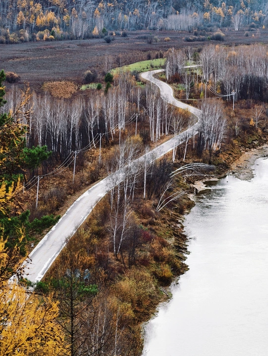 秋日的风掠过林海,蜿蜒的公路似一条银带,在斑斓的草木与澄澈的流水间舒展。每一片叶的金黄、每一道弯的邂逅,都在诉说着北国之秋独有的诗意与辽阔。