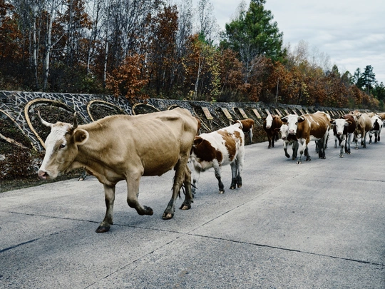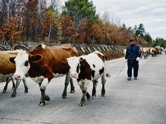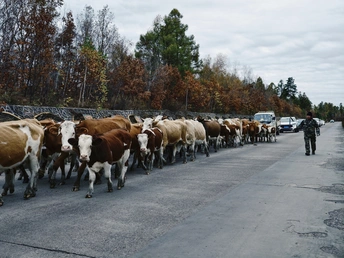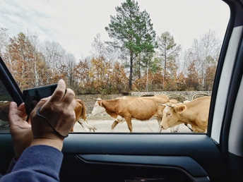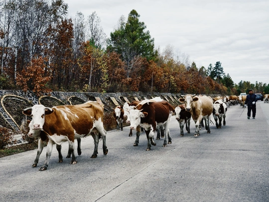 公路上突然遇到浩浩荡荡的牛群,它们在秋日山林的背景里,把公路当成了迁徙的舞台,汽车也只能放缓脚步,看这一场来自山野的“交通管制”,满是原生态的惊喜。