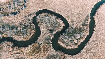 河流在旷野间勾勒出灵动的曲线,似大地的脉搏,在秋草与疏林间,书写着自然造物的肌理与诗意。