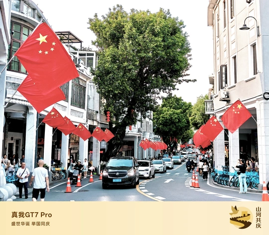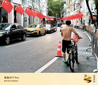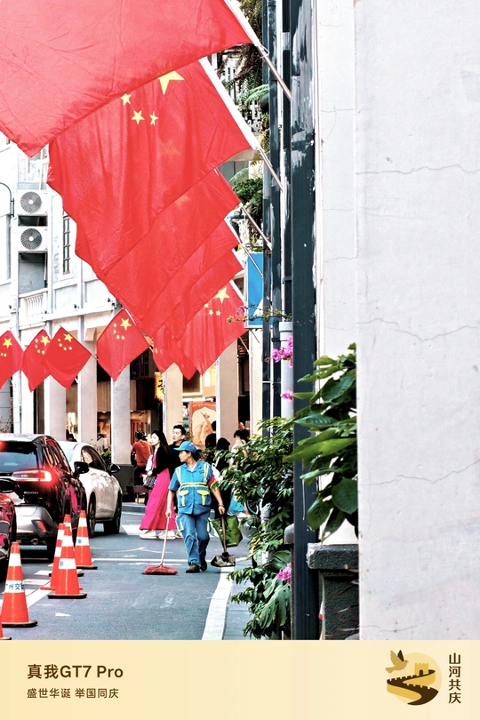 国庆期间的广州永庆坊,那叫一个热闹! 走进去一看,满街的五星红旗迎风飘着,红通通的一片,跟骑楼的青砖灰瓦搭配在一起,又好看又有节日气氛。不管是本地老街坊,还是外地来的游客,走在这儿都忍不住多看几眼这些国旗,心里暖暖的。 街上人来人往,可热闹了。有人在非遗小店看广彩、广绣,觉得这些老手艺真神奇;有人在骑楼下拍照,把国旗当背景,想留住这喜庆的瞬间。老广州们呢,就在茶楼里喝喝茶、听听粤曲,享受着假期的悠闲。 马路上也挺热闹,公交车、出租车、新能源车来来往往,还有骑共享单车的、送外卖的,大家都在这街上穿梭着。交通员在路口指挥交通,环卫工人忙着打扫,有了他们,这街面才这么整洁有序。 永庆坊这地方, old (老)和 new (新)结合得特别好。国庆这几天,这儿的国旗、人群、车水马龙,把节日的繁华体现得淋漓尽致。不管是白天还是晚上,都有不一样的热闹,来这儿逛一圈,就能感受到广州的活力和国庆的喜庆!