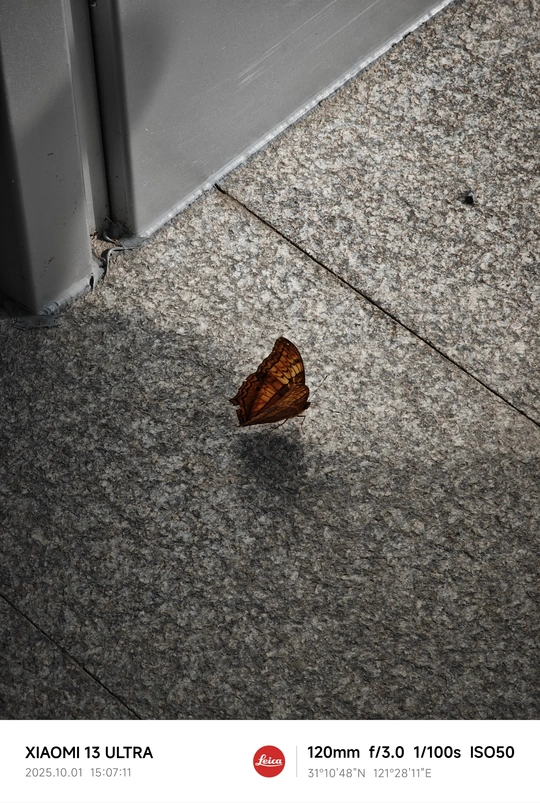 在城市建筑的灰色石缝间,偶然邂逅这只橙褐相间的蝴蝶。它在硬朗的石材地面上轻展羽翼,像是给冰冷的城市角落注入了一抹灵动的自然气息。那一刻,时间仿佛慢了下来,只余它与光影的互动,让我真切感受到,即使在喧嚣都市里,自然的小生命也能找到属于自己的舞台,演绎出独一无二的瞬间。