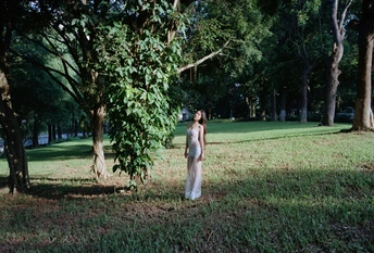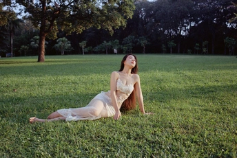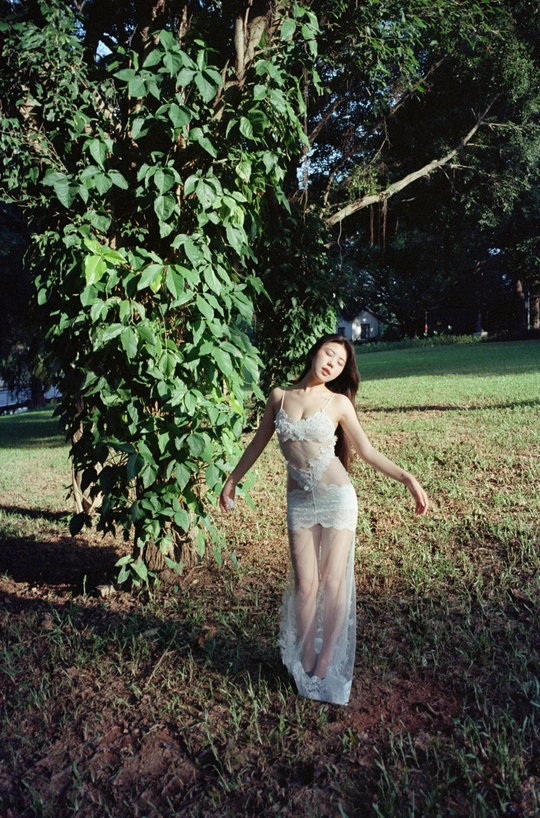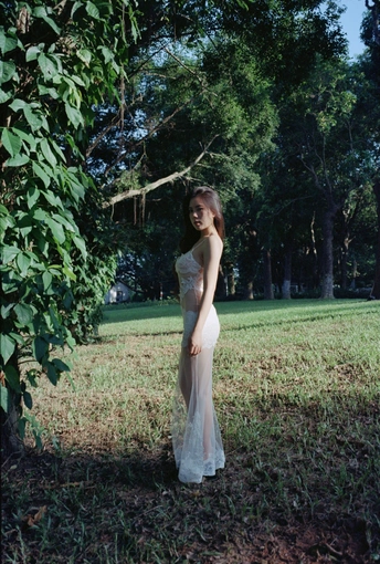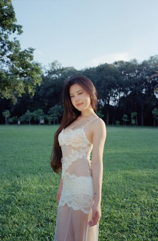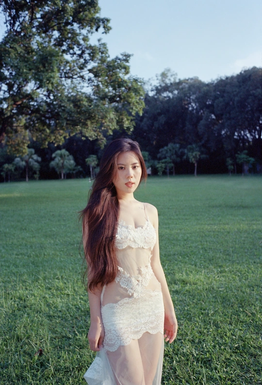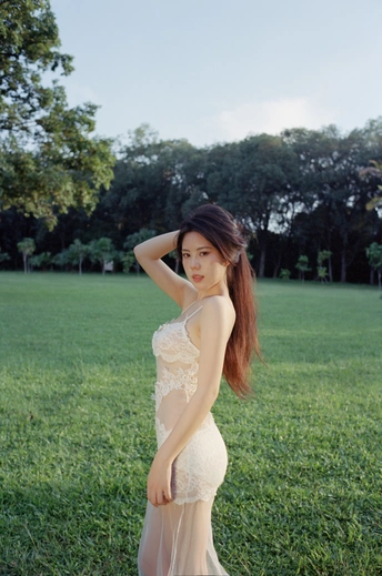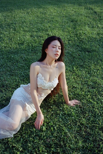阳光☀️明媚下的 🎞️Ektar100 Shot by 康泰时G1 ➕G45➕G28 在光影斑驳的林间,她似自然孕育的精灵,轻启双眸便唤醒了沉睡的草木。透明的蕾丝裙装勾勒出曼妙曲线,与周遭绿意交织成一首朦胧的诗,每一寸肌肤都在诉说着对世界的温柔探索。