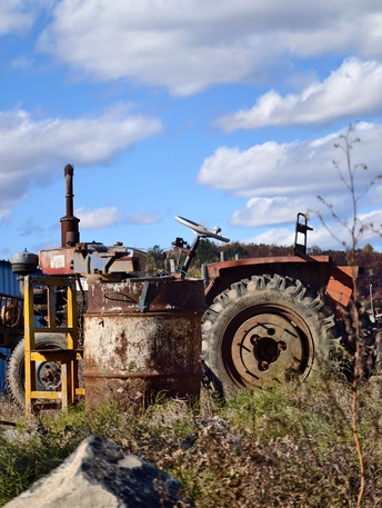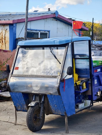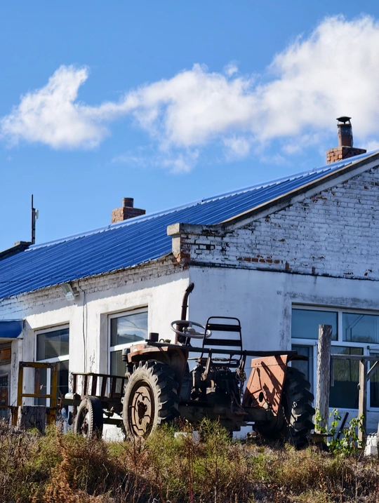 蓝瓦、农机、禽畜与无垠田野,在东北乡村的晴空下,拼凑出满是烟火气的质朴长卷,每一处细节都是乡土生活最真实的模样。