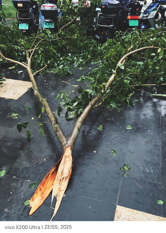 2521号台风麦德姆过境,此刻它已逐渐远离,但四处可见它的痕迹。