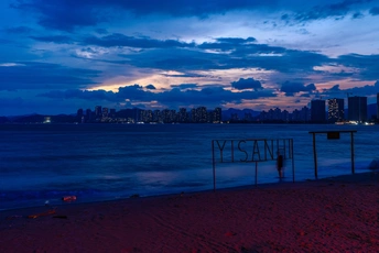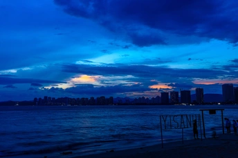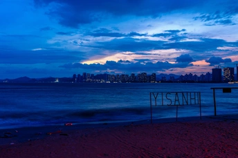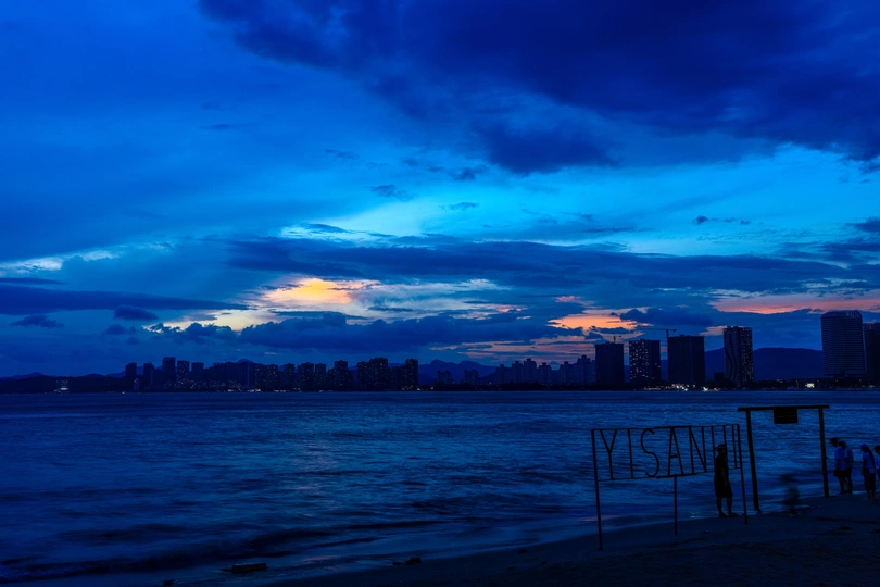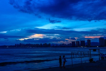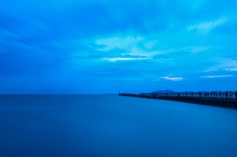 双月湾情人堤,蓝调时刻海岸风光