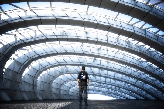 在武汉香虹艺术公园隐藏着这样一个建筑,在其内拍摄出了时空隧道的感觉。