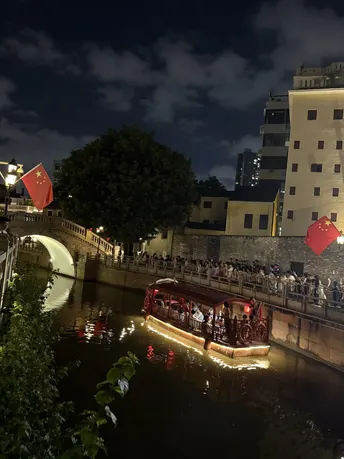 今年在广州去哪过中秋? 总得来一次永庆坊看月亮吧!一年比一年漂亮! 游玩小tips: ✅鲤遇金秋 ?古树广场 ✅烟火归舟 ? 永庆码头 ✅邀月庭院 ? 永庆一巷 ✅荷渚映月? 乡愁广场 ✅流光竹韵?金声广场 ✅织影长空?永庆大街,非遗街区,滨河内街; 活动时间:10.01-10.08日 19:00-21:30 快带上你的亲朋好友一起来赏花灯吧,码头还有花灯祈福; 每年中秋,月亮桥和红鹊桥,都是必备打卡点,穿汉服拍照更绝哦; ?位置:广州市永庆坊旅游区 ?交通:地铁1号线黄沙地铁站B口;