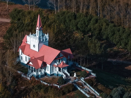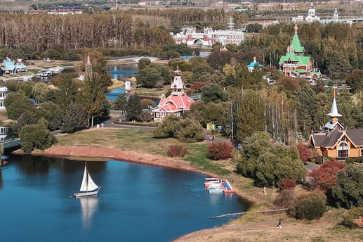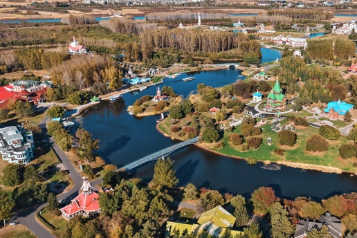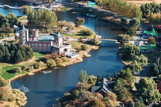 哈尔滨伏尔加庄园,秋景里俄式建筑与创意景观交融,河湖林木间,异域童话梦境尽现。 - 拍摄器材:无人机 - 拍摄地点:黑龙江哈尔滨 - 拍摄时间:2025年10月8日 - 拍摄参数:等效35mm胶片 - 图1:焦距24.00mm,光圈f/1.8,快门1/2000s,ISO 130 - 图2:焦距24.00mm,光圈f/1.8,快门1/5000s,ISO 170 - 图3:焦距24.00mm,光圈f/1.8,快门1/5000s,ISO 150 - 图4:焦距24.00mm,光圈f/1.8,快门1/5000s,ISO 130 - 图5:焦距70.00mm,光圈f/2.8,快门1/2000s,ISO 110 - 图6:焦距70.00mm,光圈f/2.8,快门1/357s,ISO 110 - 图7:焦距70.00mm,光圈f/2.8,快门1/2000s,ISO 100 - 图8:焦距70.00mm,光圈f/2.8,快门1/769s,ISO 100 - 图9:焦距24.00mm,光圈f/1.8,快门1/909s,ISO 110