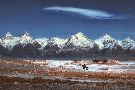 南疆十八罗汉峰如银甲罗汉列阵帕米尔高原,荒原上牧民策马穿行,冰川与火山在此共生,每一缕风都在传颂高原的雄浑与灵秀。