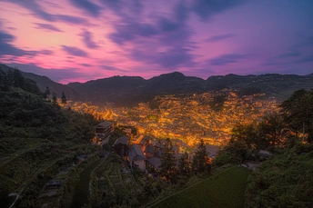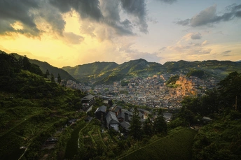 暮色漫过吊脚楼 把西江浸成金色旧梦