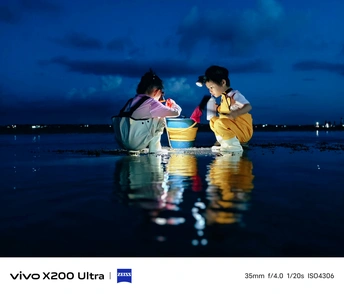 蓝调夜幕下,头灯像一颗小星星,照亮了水下的秘密。两个孩子蹲在镜面般的水中,彩色的水桶里装着整个银河的星光,和一场美丽的梦。#人间值得