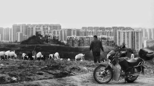 郭治优摄影 入选联合国成立80周年全球青年影像展 中央广播电视总台与联合国驻华系统共同举办。CGTN国际台发布报道。 2025年拍摄于湖北省十堰市,从独特视角记录城市建筑与乡村牧景同框,形成奇妙反差。黑白色调强化了这种冲突感,光影平淡却衬出氛围。影像不仅呈现城乡交融的日常生活,也折射出在快速城市化背景下,如何平衡发展与生态、创新与共享的思考——通过合理规划与可持续发展,让城市扩展与乡村生机互为支撑,共享现代化建设带来的便利,同时守护自然与乡土文化的韵律。