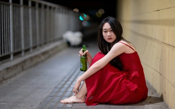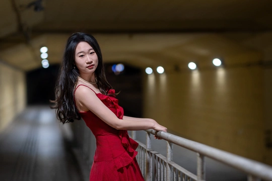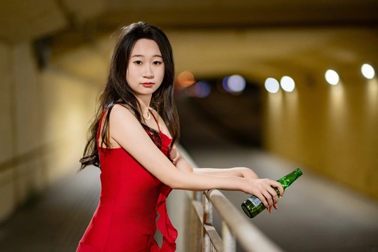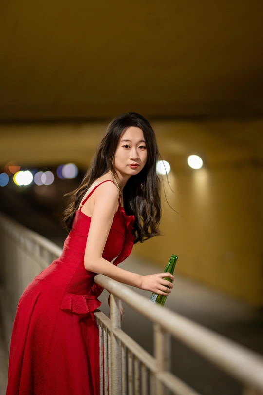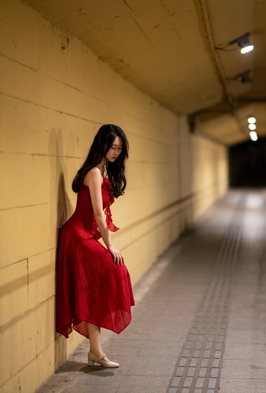 当红裙坠入夜的怀抱,桥洞的光便成了韵脚。她是暗巷里的绯色烟火,在镜头前把都市的寂寥,写成一首关于自由与美的抒情诗