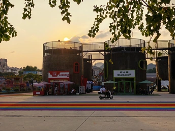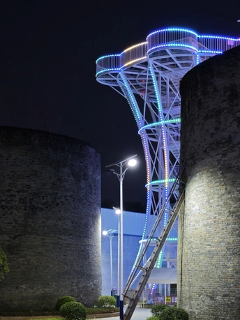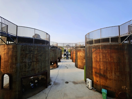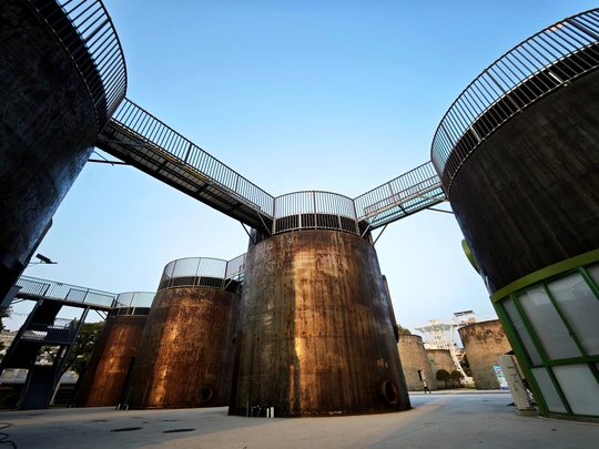 这里是工业记忆与城市生活的共生场域。油罐仓是时光的容器,装着油库的轰鸣岁月,也盛着当代人的艺术遐想。砖石的厚重、金属的冷冽被赋予新的温度——连廊是漫步的艺术动线,彩色装置是活力的注脚,夜间的光影是历史与现代的对话。它不再是孤立的工业遗址,而是一座“时光罐仓”,让城市人在触摸历史肌理的同时,享受艺术休闲的多元体验,成为承载集体记忆又引领潮流的城市新名片。