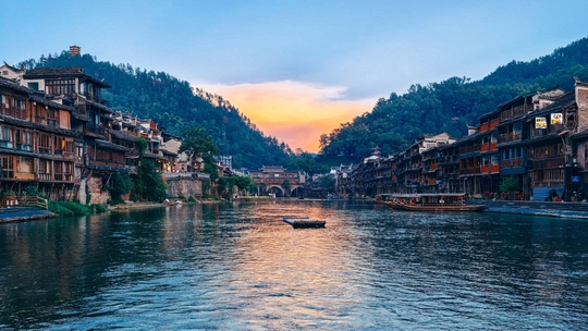 沱江淌着《边城》的余韵,吊脚楼是翠翠望过的轮廓。暮色给虹桥披金,游船划过的涟漪,像傩送当年的歌声泛起的波。古城的每寸光影,都在续写从文先生未说完的故事,这一帧,是岁月对边城的温柔回响 。