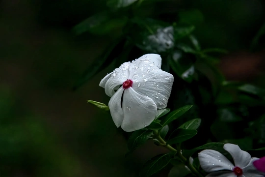 雨丝轻吻 白花的梦 水珠缀成 水晶的星 红蕊藏着 夏的秘语 绿叶托着 宁静的诗