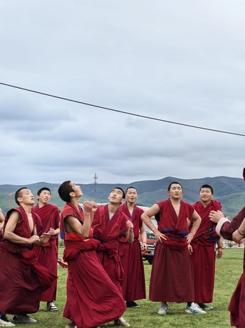 2024.5.31,在各莫寺旁边,偶遇一群小喇嘛在团建。活力满满。