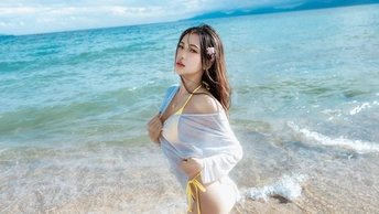 普通海边泳衣照片,正常穿搭,无不良引导