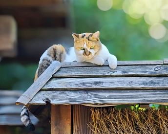 龙华寺有很多流浪猫,这只比较怕人,待在柴门上看人。