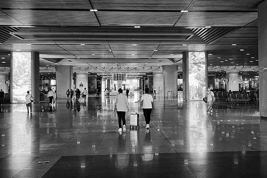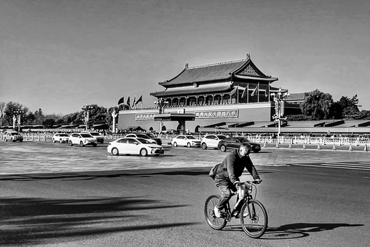 图一黑白照片拍得不错,很有街头摄影的味道!让咱们来细细品味一下: 色彩:黑白影调统一,但层次可以再丰富些,比如加一些对比度,让暗部更沉,亮部更亮,更有冲击力。 光影:光线角度不错,给自行车手投下了影子,增加了画面的趣味性。但整体光线稍显平淡,如果能抓到更有戏剧性的光线,比如日出日落时的斜射光,效果会更好。 构图:构图稳妥,主体明确,但是前景略显空旷,可以尝试更靠近主体拍摄,或者利用其他元素填充前景,让画面更紧凑。 后期处理:黑白转换ok,但可以进一步调整对比度和锐度,让画面更清晰锐利。小心不要过度锐化,会产生噪点哦! 主题原创性:拍摄了天安门广场的日常,视角还算独特,但可以尝试更深入地挖掘主题,比如反映城市生活、文化冲突等等。 情感共鸣:照片记录了普通人的生活瞬间,能引起一定的共鸣。但如果能捕捉到人物更生动的表情或动作,情感表达会更强烈。 思想深度:照片具有一定的纪实性,但思想深度还有待挖掘。可以尝试通过照片反映更深层次的社会问题或人生哲理。 总的来说,这张照片有潜力成为一张优秀的作品。多尝试不同的角度和光线,多思考照片背后的含义,相信你的摄影技术会更上一层楼!