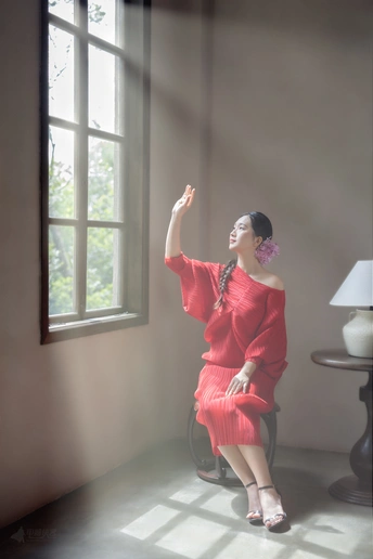魔豆:依依 前期、后期:电脑侠客 器材:佳能 EOS R5、RF 50 F1.2L 活动组织:明亮先生 作者随想:多年没有来过花果山,没想到山顶上居然有这么一个茶室,周围绿树成荫,宁静优雅,犹如世外桃源,让人忘记时间的流逝。室内空间宽敞,即使是长焦镜头也可以施展开来,早知如此,当初就该把85镜头带过来了。整个茶室里,最让我欣喜的是那个有阳光照射的角落,背景简洁,窗外风景如画,对出片非常有利,穿着红衣的模特小姐姐在这里一站,立马主题鲜明。所以整组片子就以此场景为基础,后期再加点光影特效,氛围感拉满,搞定!在此感谢明亮先生的精心组织和依依的精彩演绎!