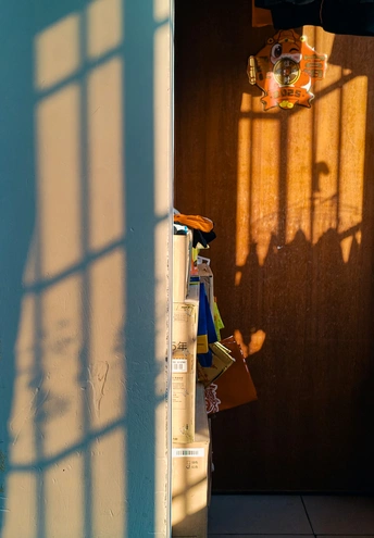阳光在午后洒在墙上,门上,营造出一种恬静安详的氛围,让人感觉有一种岁月静好的感觉。