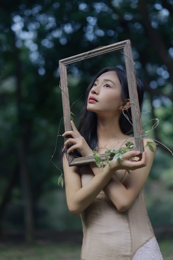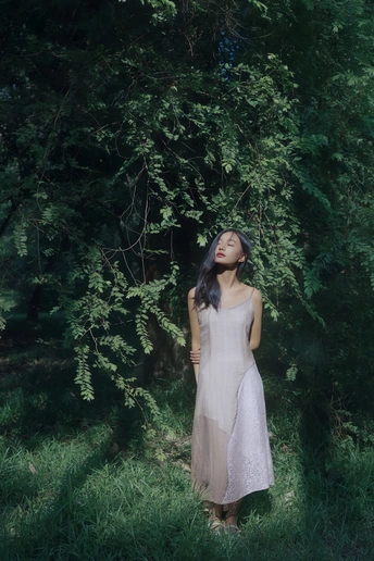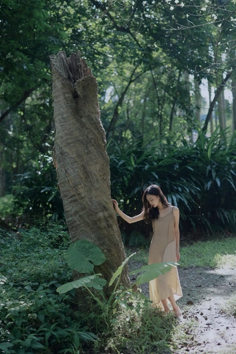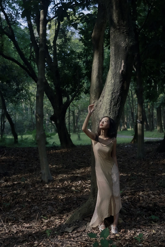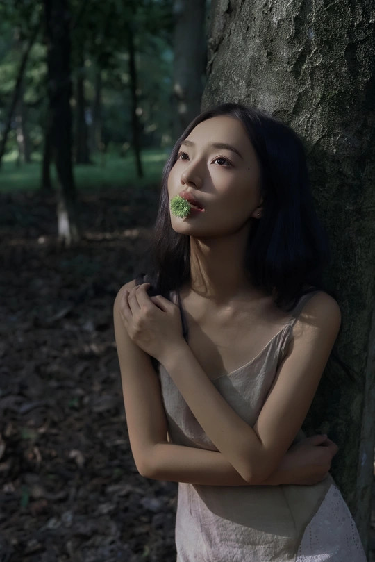 阳光透过叶隙洒落,光影斑驳。每一缕光辉、每一片叶脉,都在悄然酝酿人与自然的深情共鸣,将森系的静谧与情愫的温柔,凝作一帧帧诗意的永恒。