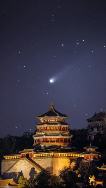 👍10月19日北京难得一遇的通透天气,尝试在颐和园佛香阁拍摄一张彗星同框照片。P1 去年10月15日在颐和园拍摄了玉峰塔+阿特拉斯彗星P2。 因为今年的莱蒙彗星比阿特拉斯小太多了,拍摄前也不确定是否成功,经过尝试,证明城市里可以拍。 先给大家分享拍摄技巧: 👍1.名称:莱蒙彗星lemmon ✌2.拍摄时间段:202510月中下旬-2025年11月上旬 👊🏽3.每日拍摄时间:日落后-20:00(晚八点落下地平线)、早上5点--日出后 🌹4.拍摄方位角度:日落后时段:约305-315°(P3),日出时段:约45-55度(P4) 💖5.拍摄高度:日落后:约30°--地平线,日出后:地平线--日出 ❤6.拍摄参数:快门速度2-5S,F最大,ISO400-3200 🙏7.拍摄焦段:建议150以上,彗星比较小,焦段短了太小了。 🐷8.后期技巧:可以不使用赤道仪,后期采用多张堆栈降噪,注意,我主页置顶笔记是去年的彗星教程,对于莱蒙彗星,seq对战软件已经无法对齐,可以采用PS手动对齐,再堆栈平均值降噪即可